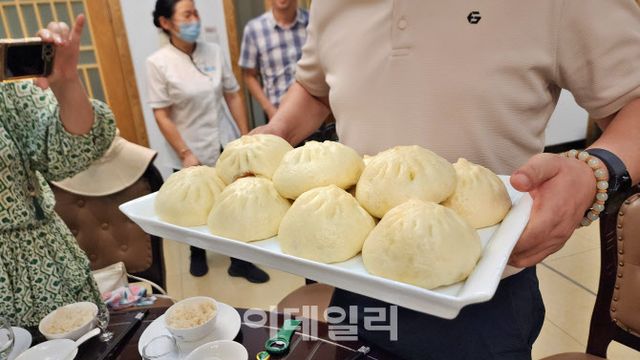 찜통에서 갓 꺼낸 만두는 들기조차 벅찰 정도로 묵직했다. 겉피는 두툼하면서도 부드럽게 쪄져 있어 한입 베어 물면 탄력이 살아 있었다. 그러나 속은 예상과 달리 육즙이 터져 나오는 ‘샤오룽바오’ 스타일이 아니다. 오히려 단단하고 밀도 있게 다져진 돼지고기가 중심을 잡는다. 씹을수록 고기의 고소한 풍미가 은은하게 퍼지고, 불필요한 향신료는 거의 배제돼 한국인 입맛에도 전혀 거부감이 없었다. 짙은 양념 대신 재료 본연의 맛을 살려낸 담백함이 이 집 만두의 진가다.