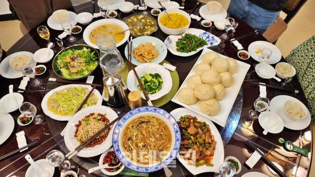 대왕 만두 외에도 다양한 지역 요리가 차려졌다. 아삭하고 짭조름한 무절임은 입맛을 돋우고 두툼한 삼겹살과 고추, 양파가 어우러진 회과육은 기름지면서도 한국인에게 친숙한 풍미를 냈다. 게살 토란탕은 부드럽게 으깬 토란에서 은근한 단맛이 배어 나와 한 끼를 든든하게 채웠고, 설채마파두부는 얼얼한 매운맛 속에 깊은 감칠맛을 담았다. 지역성과 보편성이 교차하는 한 상이었다.