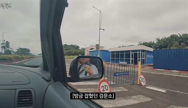 적도기니 여행 중 제지를 당했던 말라보 외곽 검문소 모습. [곽튜브 유튜브 영상 캡처]