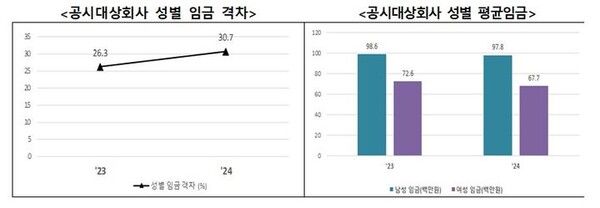 반면 여성의 경우 평균임금이 6773만원으로 집계됐다. 이에 따른 성별 임금 격차는 전년(26.3%) 대비 4.4%p 증가한 30.7%로 나타났다.