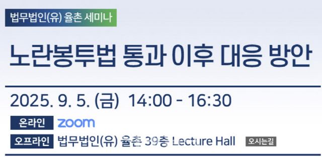 율촌 관계자는 “이번 세미나에서는 기업들의 준비사항과 향후 전개 방향을 논의한다”며 “노란봉투법 통과로 인한 기업들의 영향과 대응 방안을 함께 찾아가는 세미나가 될 것”이라고 설명했다.