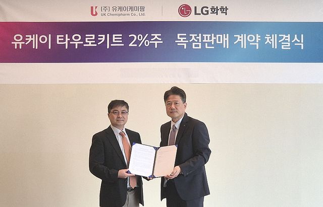 LG화학은 4일, ㈜유케이케미팜이 개발해 최근 품목허가를 받은 ‘유케이 타우로키트 2%주(이하 타우로키트)’를 도입, 국내 독점 판매한다고 밝혔다. LG화학은 시노비안, 히루안플러스 등 히알루론산(HA) 성분의 골관절염 치료제 사업을 바탕으로 근골격계 분야에서 촘촘한 고객 네트워크를 구축하고 있으며, 근골격 수술 등에 사용되는 고객 친화적 수술용 항균제 수요를 충족시키기 위해 타우로키트를 출시한다고 말했다.