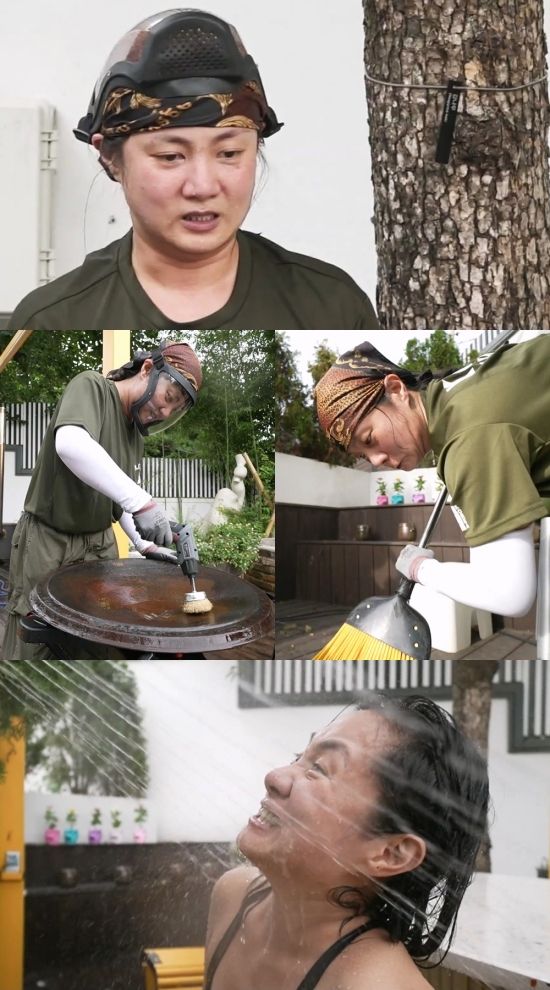 정원 관리에 이어 박나래는 녹이 슨 ‘솥뚜껑 심폐 소생’에 나선다. 땀을 뻘뻘 흘린 박나래는 마당 물청소를 하면서 ‘쾌녀 나래’를 소환해 폭소를 유발한다