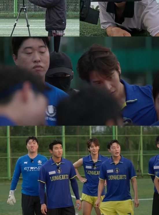 승리를 향한 열망은 선수들도 다르지 않다. ‘FC파파클로스’ 신우재, 이찬형, 하성운, 서은광, 임남규는 카메라맨으로 변신해 ‘라이온하츠FC’ 잠입 취재에 나선다. 완벽한 변장으로 상대 전술을 캐내려는 이들의 작전은 영화 같은 스릴을 선사한다. 과연 그들이 파악한 ‘라이온하츠FC’의 비밀은 무엇일지 궁금증을 자극한다.