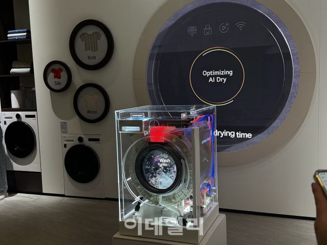 반면 LG전자의 경우 각각의 가전에 들어가는 핵심 기술에 AI를 접목하는 점을 내세웠다. LG전자는 이날 사전 부스 투어에서 세탁건조기에 들어가는 듀얼 인버터 히트펌프와 DD모터 등 AI 코어 기술력을 특히 강조했다. LG전자 관계자는 “대부분의 AI 가전들이 소프트웨어 중심 기능에 집중한다면, LG AI 가전은 핵심 기술까지 AI를 접목했다는 점이 타사 제품과 가장 큰 차이점”이라고 설명했다.