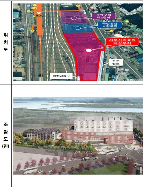 | ▲ 서부산의료원 위치도 및 조감도 |
