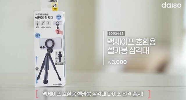 최근 다이소 공식 유튜브 채널에 공개된 ‘8월 3주차 2탄’ 신상품 영상에는 단돈 3000원짜리 맥세이프 호환 셀카봉 삼각대가 소개됐다. 일반적으로 맥세이프 기반 셀카봉과 삼각대 제품은 정품이나 유명 브랜드 제품 기준 10만 원을 훌쩍 넘기는 경우가 많다. 그러나 다이소는 가격을 단숨에 3000원까지 낮추며 아이폰 사용자들에게 ‘체감가 충격’을 안겼다.