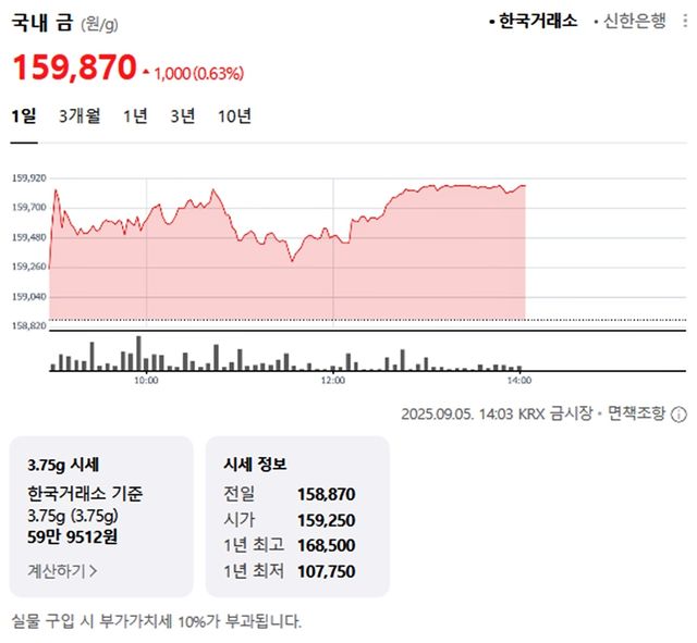 국내 금시세(금값)가 5일(한국 시각) 오후 상승세(전 거래일 대비)를 보이고 있다.