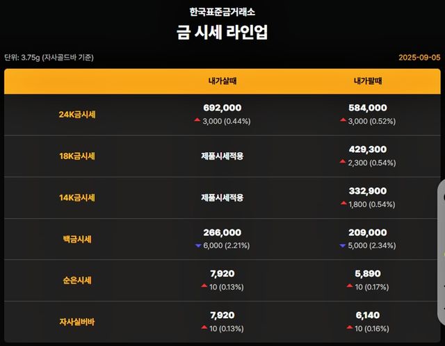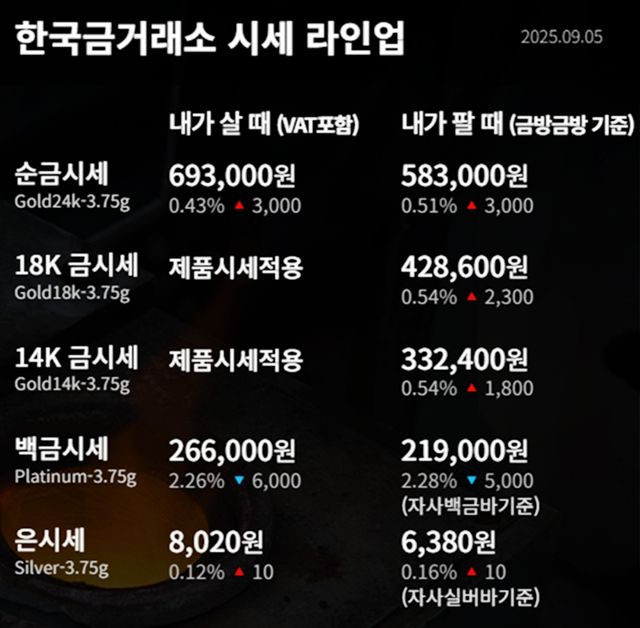 순금(24K) : 매입가 69만 3000원 / 매도가 58만 3000원