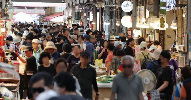 서울 시내 한 전통 시장에서 시민이 채소를 고르고 있다. / 뉴스1