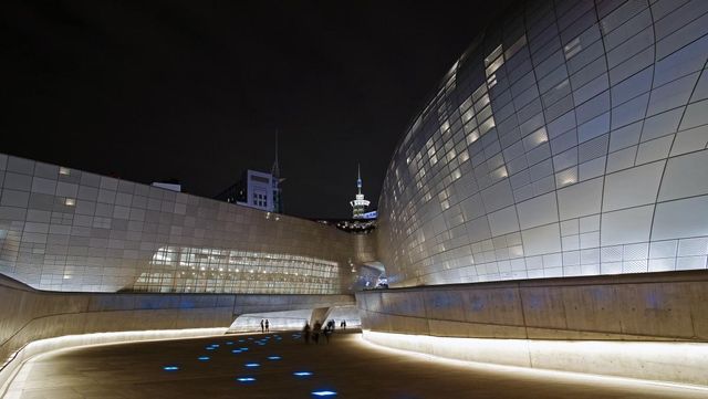 세계적 건축가 자하 하디드가 설계한 동대문디자인플라자(DDP)는 독특한 디자인으로 큰 화제를 모았다. 흐르는 듯한 곡선과 유선형 실루엣이 가장 큰 특징이며, 직선이나 각을 최소화하고 마치 물결이나 우주선 같은 형태로 도심 한가운데 자리 잡고 있다. 외관은 약 4만 5000여 장의 알루미늄 패널로 덮여 있으며 패널마다 곡률, 크기, 패턴이 모두 맞춤 제작됐다. 특히 밤이 되면 LED 조명과 도시 불빛이 패널 표면에 반사돼 환상적인 야경을 연출한다.