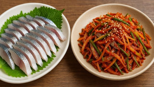 전어회와 전어무침. 기사 내용을 바탕으로 AI가 생성한 자료사진. (기사 속 실제 음식과 차이가 있을 수 있음을 알립니다.