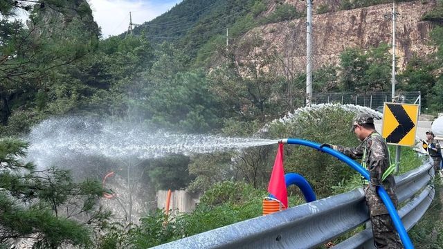 군 물탱크를 활용해 오봉저수지에 급수 지원하는 모습 / 행정안전부 제공