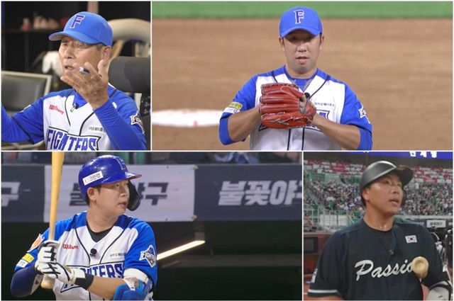 오는 8일(월) 오후 8시 공개되는 스튜디오C1 야구 예능 프로그램 '불꽃야구' 19화에서는 불꽃 파이터즈와 독립리그 대표팀, 창과 방패의 대격돌이 펼쳐진다. 앞서 파이터즈는 마운드가 흔들리면서 독립리그 대표팀에게 선취점을 내주며 고전했다. 하지만 이내 박용택의 적시타가 터지고, 이대호와 정성훈이 1타점씩 기록하며 3:3 동점을 만들었다.