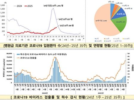 질병관리청이 운영하는 병원급 의료기관 221개소의 급성호흡기감염증 표본감시 결과, 2025년 35주차(8월 24일8월 30일) 코로나19 입원환자 수는 399명을 기록했다. 이는 26주차(6월 22일6월 28일) 63명 이후 9주 연속 증가한 수치다.