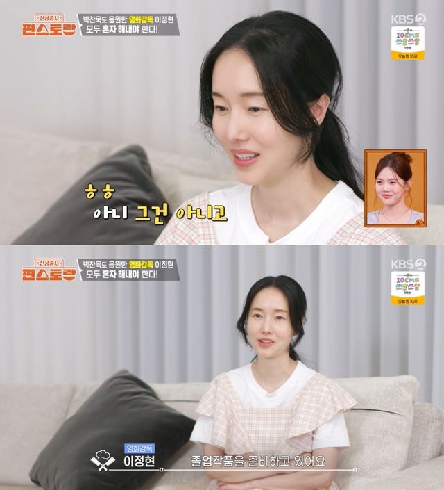 앞서 박찬욱 감독에게 투자를 부탁했던 이정현. 이정현은 "투자는 아니고 제가 대학원을 다니고 있지 않냐. 졸업 작품을 준비하고 있다. 이번에도 지난 작품과 마찬가지로 감독, 제작, 배, 미술도 제가 하고 소품, 의상도 제가 한다. 이번 작품 역시 일인 다역을 한다"라고 밝혔다.