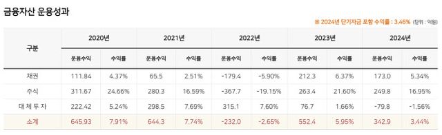 다른 주요 공제회인 △한국교직원공제회(11.1%) △대한지방행정공제회(9.1%) △군인공제회(손익계산서 기준 7.2%, 포괄손익 기준 7.3%) △대한소방공제회(7.13%) △노란우산공제(6.02%) △경찰공제회(6.0%) △과학기술인공제회(5.89%) △건설근로자공제회(4.61%)와 비교하면 수익률이 상대적으로 낮은 편이다.