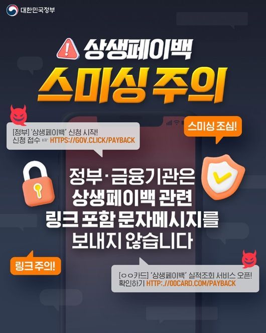 [와이뉴스] 정부·금융기관은 상생페이백 관련 링크 포함 문자메시지를 보내지 않습니다.