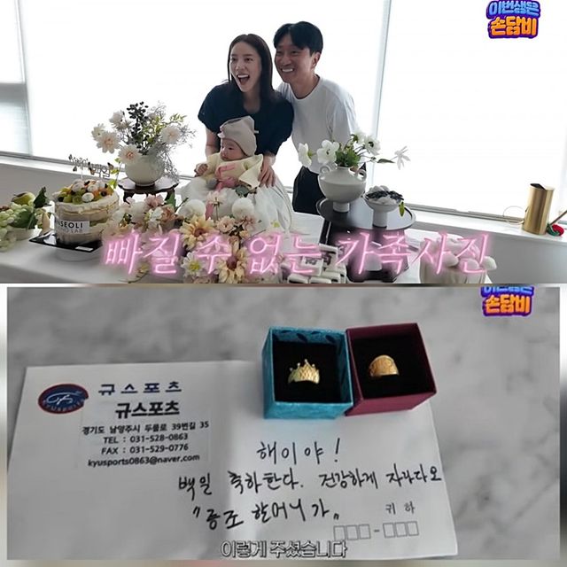 해이의 백일상에는 양가 할머니들이 참석해 금반지와 두둑한 용돈을 선물하며 손녀의 앞날을 축복했다. 손담비는 “지금은 옹알이로 의사소통까지 한다. 그사이 많이 컸다”며 딸의 빠른 성장을 기뻐했다.