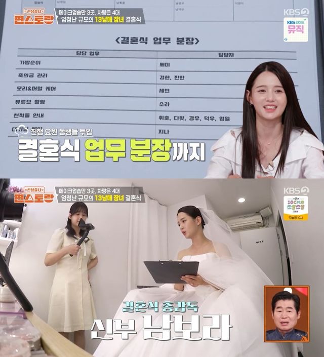 13남매의 장녀인 남보라는 "총인원 25명에 메이크업 샵만 3군데, 배차는 4대를 했다"라는 놀라움 결혼식 스케일을 밝혔다.