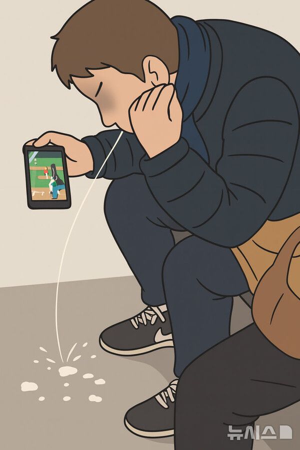 영상 속 문제의 남성은 자리에 앉아 몸을 앞으로 숙이고 있었고, 한 손으로는 머리를 짚고 있었다. 또 다른 손에는 휴대전화를 쥐고 야구로 추정되는 영상을 보고 있었다.