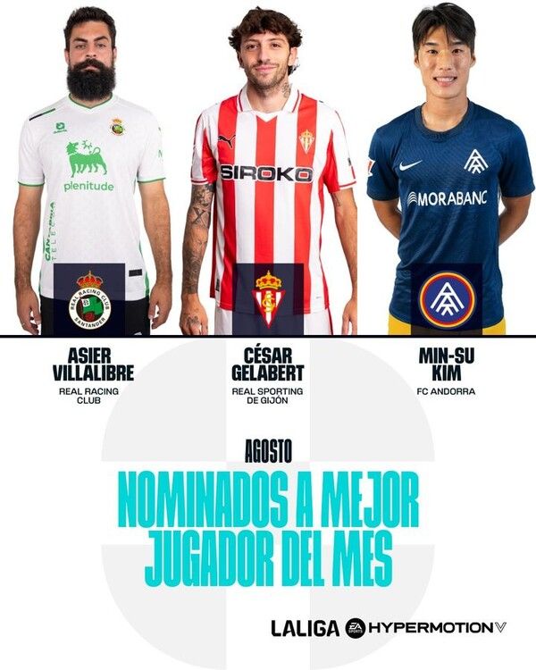 뉴시스 보도에 따르면, 김민수는 지난 4일(현지 시간) 아시에르 비야리브레(라싱), 세사르 헬라베르트(스포르팅 히혼)와 함께 라리가2 8월 이달의 선수 후보로 지명됐다.