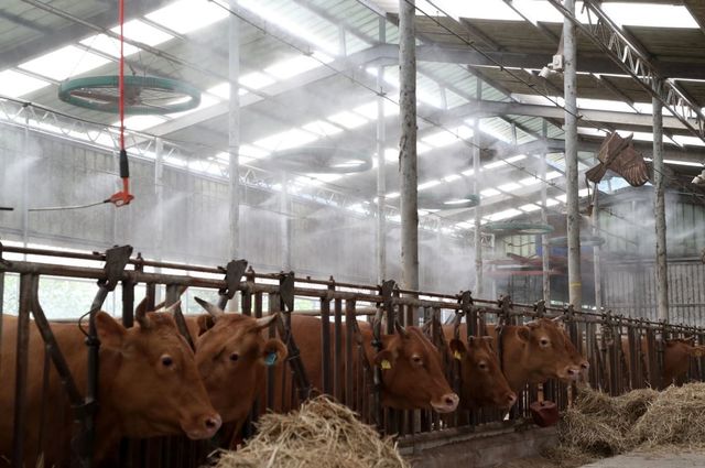 한 축사에서 폭염에 더위 식히는 소들 / 뉴스1