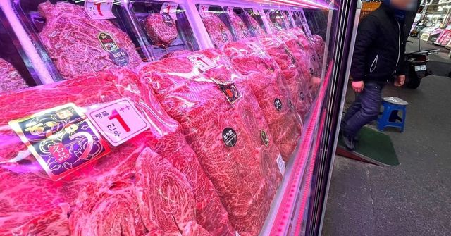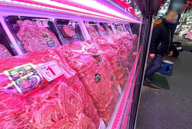 한 시장의 정육점에 진열된 한우들 / 뉴스1
