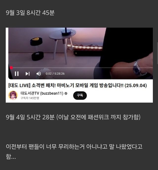 평소에 방송 길게하는 사람은 아니었는데(3~5시간)