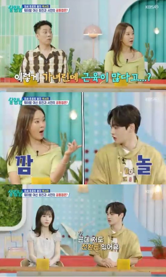 희진은 쑥스러워하면서 "너무 감사하게도 '얼굴은 선녀인데 몸은 나무꾼이다' 이런 얘기를 듣는다"고 했다.