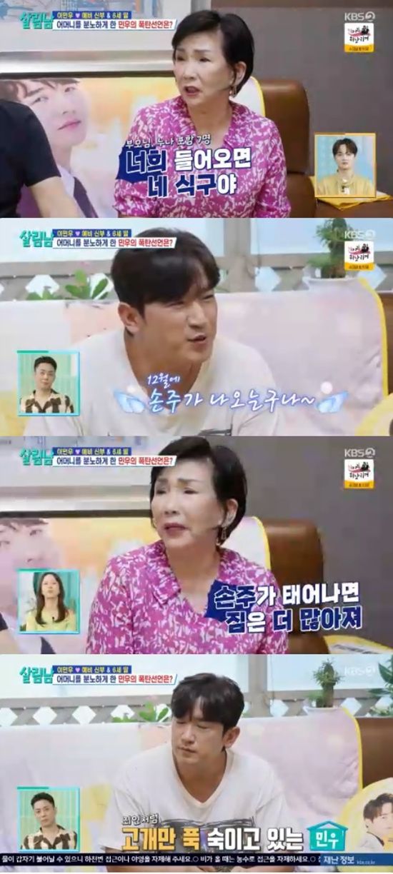 이민우 어머니는 아들이 미리 알려주지 않은 것에 화를 냈다. 며느리와 손주가 오는 것을 알았다면 사전에 준비를 했을 텐데 그럴 시간이 부족했기 때문.