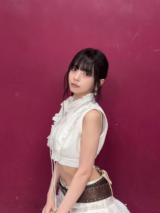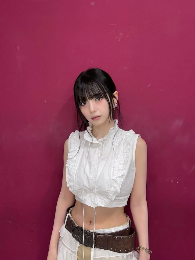 시크한 오프숄더와 클래식 스트라이프의 만남, 프로미스나인 송하영의 팬 사인회 룩