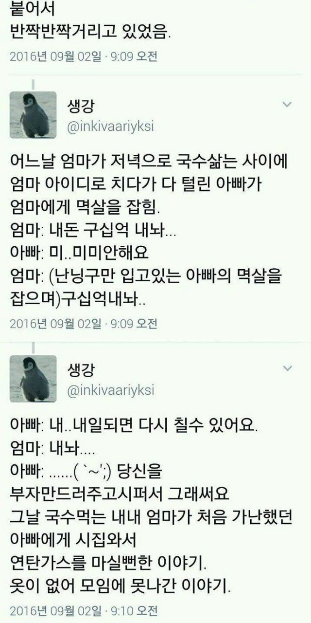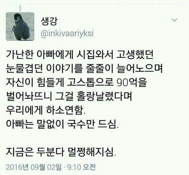 아부지가 따놓은 돈을 어무니가 올인으로 자주 날리거든요....