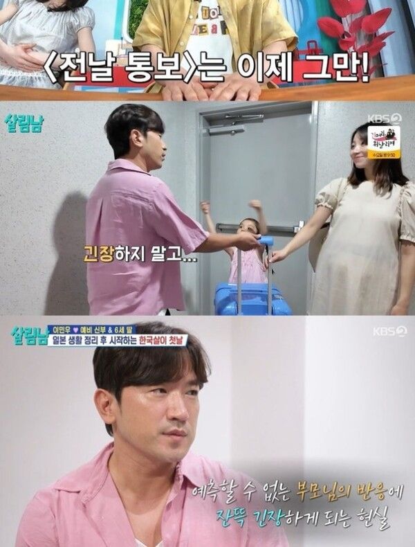 지난 9월 6일 방송된 KBS 2TV '살림하는 남자들 시즌2'에는 이민우가 예비 신부와 딸의 한국 입국 소식을 하루 전날 부모님께 통보하는 모습이 그려졌다. 갑작스러운 소식에 당황한 부모님은 서둘러 청소하며 손주 맞을 준비에 나섰다.