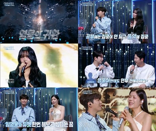 지난 6일 방송된 721회 ‘불후의 명곡’(이하 ‘불후’)은 '임영웅과 친구들' 2부로, 아티스트 임영웅과 그의 음악 친구인 린, 로이킴, 조째즈, 최유리가 출연해 각자의 음악 세계를 담은 무대들과 함께 '인간 임영웅'의 매력을 엿볼 수 있는 다채로운 이야기들을 풀어내며 풍성한 볼거리를 선사했다.