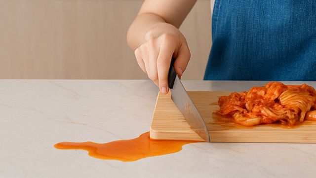 주방에서 김치를 썰다 보면 도마 밖으로 흘러내린 국물이 싱크대 상판에 얼룩을 남기기 쉽다. 얼른 닦아내면 괜찮을 것 같지만 시간이 조금만 지나도 붉은 자국이 스며들어 얼룩덜룩 흔적이 남는다. 주방세제로 빡빡 문질러도 잘 지워지지 않고 락스나 구연산 등 화학약품을 사용해도 효과가 미미하거나 오히려 표면이 손상되는 경우도 많다. 김치국물 얼룩은 많은 가정에서 반복되는 불편한 고민거리다.