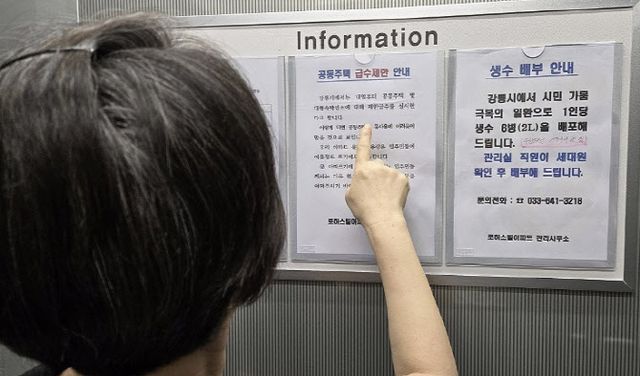 이런 가운데 강릉 교동택지의 한 아파트에는 “우리 아파트는 평균 2일을 사용할 물탱크를 갖췄으나 시에서 4일을 사용하라고 한다”며 단수 가능성을 시사하는 안내문을 내붙였다.