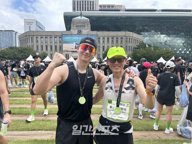 1시간 정도 걸려 10km를 완주했다는 이정식 씨는 아들인 이호근(36) 씨와 함께 뛰었다. 이정식 씨는 “아들과 출발만 같이 하지, 자기 페이스대로 간다”며 웃었다. 이호근 씨는 “내가 결혼하고 아버지와 함께할 기회가 많이 없는데, 이렇게 같이 뛰어서 좋다”고 소감을 밝혔다.
