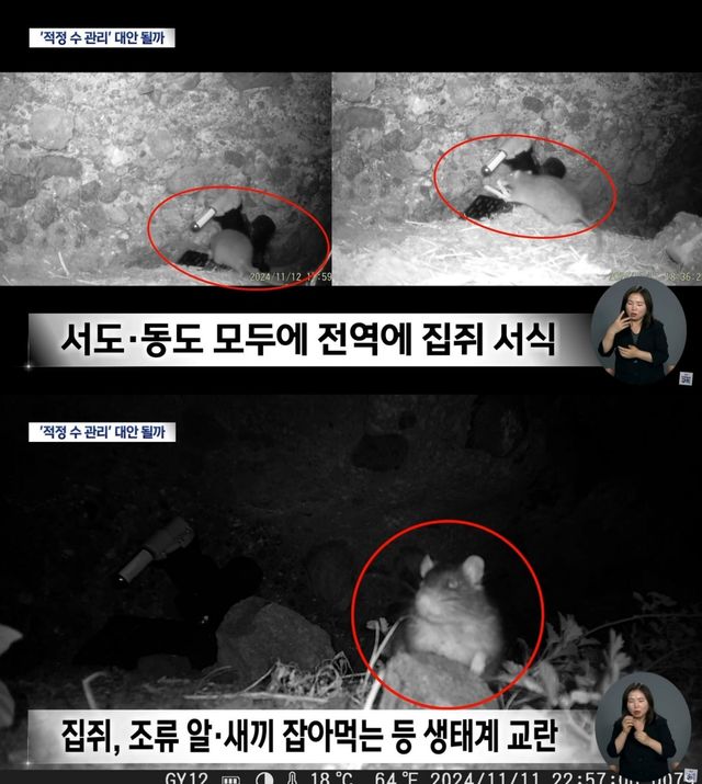 문제는 집쥐가 독도의 고유 생태계를 뒤흔들고 있다는 점이다. 바다제비와 괭이갈매기의 알과 새끼를 공격하며 최근 4년간 집단 폐사한 바다제비 81마리 중 90% 이상이 집쥐의 공격에 희생된 것으로 나타났다. 독도 자생 식물도 먹이로 삼아 식물 생태계를 교란한다. 섬에 둥지를 튼 조류와 식물 모두가 동시에 위협받고 있는 셈이다.