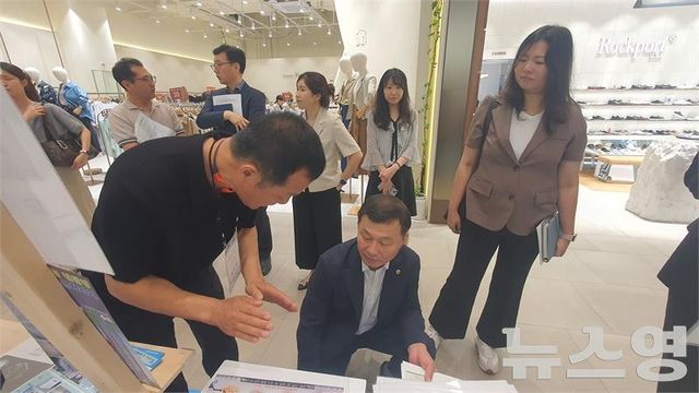경기도의회 경제노동위원회 한원찬 의원이 제품 설명을 듣고 있다./사진=뉴스영