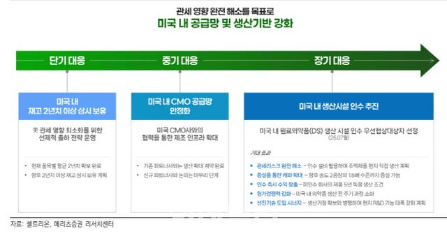 김 연구원은 “셀트리온은 미국 내 2년치 의약품 재고를 이미 확보했다”며 “미국 내 원료의약품(DS) CDMO 공장 인수 계획을 추진 중”이라고 진단했다.
