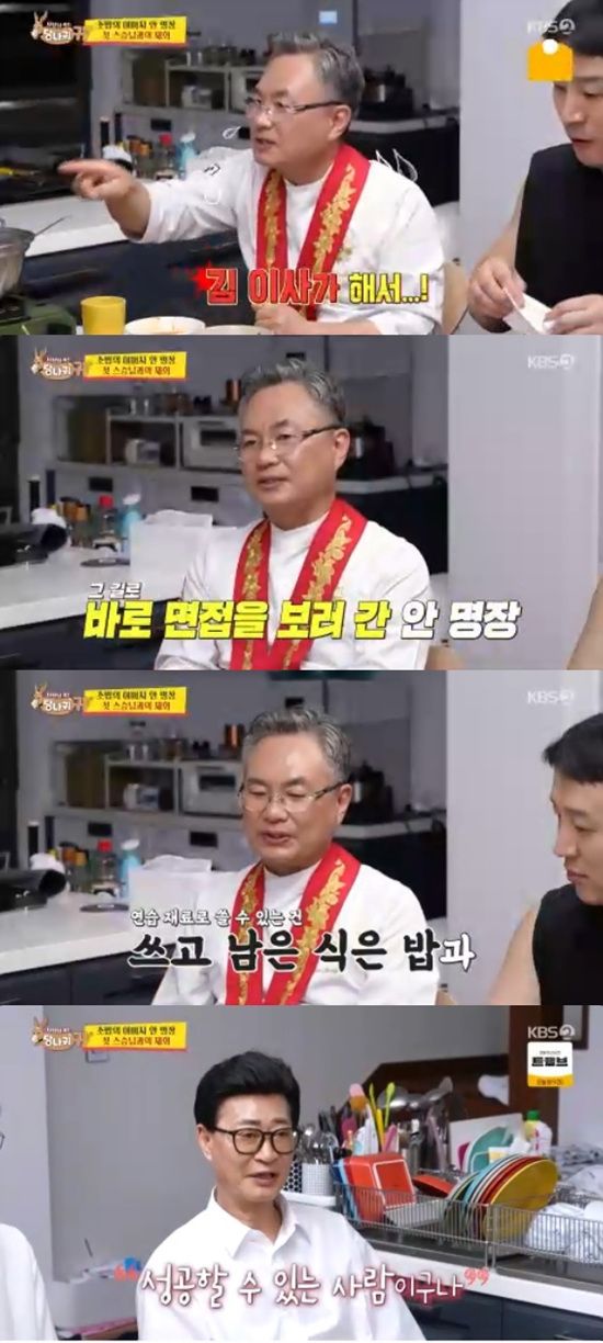 김진홍은 안유성에 대해 "처음 면접을 보고 들어왔을 때 부터 이 친구는 성공할 수 있는 사람이구나를 느꼈다. 그러니까 명장이 된 거 아닐까"라고 제자의 성공을 흐뭇해 했다.