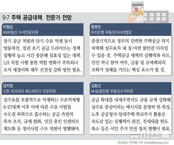 뉴시스 보도에 따르면, 전문가들은 고강도 수요 억제책이었던 6·27 대출 규제를 뒷받침하는 후속 공급 대책으로 의미가 있다는 평가를 내놓았다. 다만 한국토지주택공사(LH) 직접 시행의 경우 재정적 뒷받침을 포함한 후속 조치 필요성을 제기했다.
