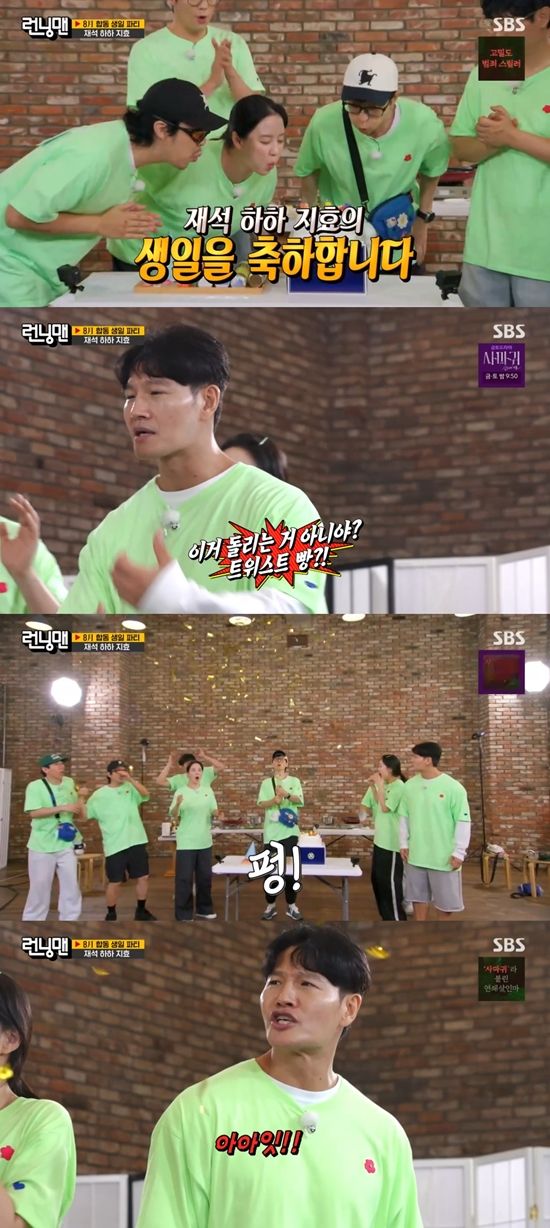 이날 방송에서 유재석, 하하, 송지효의 생일 축하가 진행됐다. 생크림 케이크가 등장하자, 멤버들은 세 사람을 위해 생일 축하 노래를 불렀다. 유재석, 하하, 송지효는 촛불의 불을 끄고 감사 인사를 전했다.