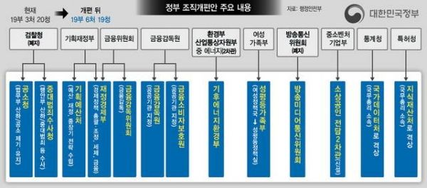 윤호중 행정안전부 장관은 이날 오후 정부서울종합청사에서 브리핑을 통해 제3차 고위당정협의회에서 조율된 정부조직법 개편안에 대해 설명했다. 중앙행정기관 규모는 현행 '19부 3처 20청 6위원회'에서 '19부 6처 19청 6위원회'로 변경된다.