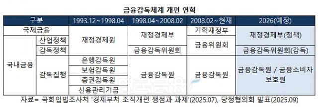 앞서 이억원 금융위원장 후보자와 이찬진 금감원장 인선이 이뤄지면서 금융감독 체계 개편 기류에 변화가 있을 수 있다는 해석도 적지 않았기 때문이다.