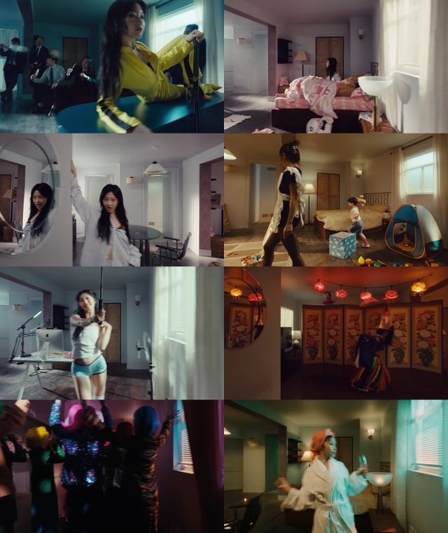 뮤직비디오 역시 혜윤의 독창적인 감각을 증명한다. 공간은 하나, 혜윤의 방 안이지만 끊임없이 변하는 의상과 오브제가 마치 원테이크 촬영 같은 착시를 불러일으킨다. 그는 “완전히 깨지도 일어나지도 않은 수면 상태에서 떠올린, 크리처가 사람들의 꿈속에 들어가 억지로 춤을 추게 한다는 상상에서 출발했다”며 “하루 만에 17벌의 의상을 소화하며 13가지 캐릭터로 변신했다. 헤어·메이크업 팀이 마치 스피드 게임을 하는 것 같았다”고 회상했다.