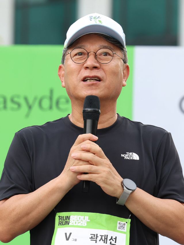 | 7일 서울 중구 서울광장에서 열린 ‘런 서울 런 2025(일간스포츠 서울마라톤)’에서 곽재선 KG그룹 회장이 개회사를 하고 있다. 사진=일간스포츠 제공 |