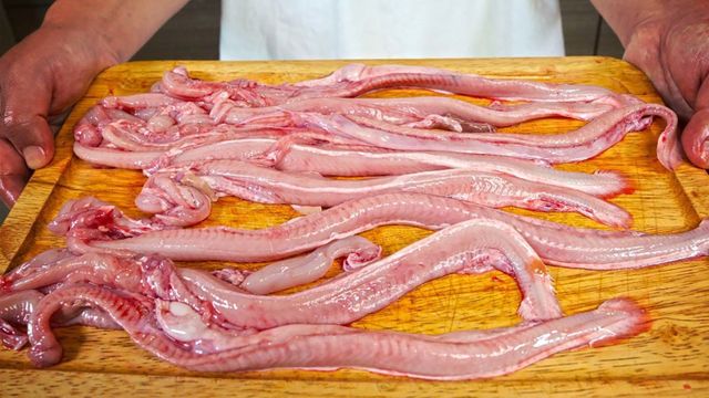 김지민은 여덟 마리가 들어 있는 1kg들이 국내산 활곰장어를 구매했다. 내장은 제거됐지만 간이 붙어 있고 피와 점액질이 많아 징그러워 보인다고 했다. 냄새는 안 난다고 놀라워한다. 손질 후 수율은 큰 건 600g, 작은 건 550g 정도 나온다고 했다. 껍질을 벗기기 때문에 수율이 민물장어(70%)보다 낮다고 설명한다.
