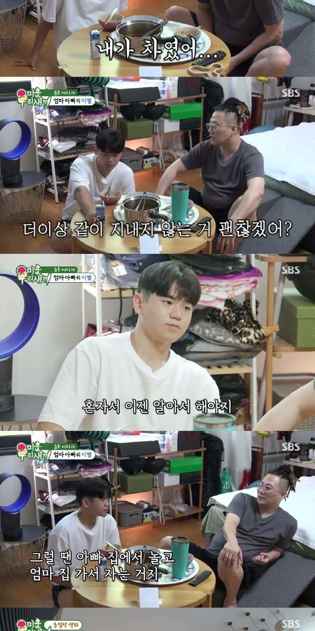또한 윤민수는 “다음에 한국 올 때는 지금은 엄마랑 같이 살지만 그땐 또 어떻게 될지 모른다”며 이혼에 대한 이야기를 조심스럽게 꺼냈다. 이에 대한 질문에 윤후는 “생각보다 (괜찮다). 혼자서 이젠 알아서 해야지”라며 의젓한 모습을 보였다. 오히려 “나 너 없음 심심하단 말이야”라는 윤민수의 말에 윤후는 “노는 건 아빠랑 놀 거 같다”라면서도 “근데 지내는 건 엄마랑일 것 같다”고 솔직하게 답해 윤민수를 웃게 했다. 이에 스페셜 MC 이성민은 “엄마는 지켜주겠다는 그런 것 같다”고 했고, 스튜디오에서도 “착하다”라며 입을 모았다.